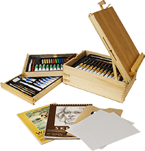95 Piece Wood Box Easel Painting Set 12 tubes